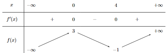 | c) Hàm số $f(x)$ nghịch biến trên khoảng $(0;4)$. | ||