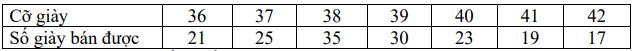 Một cửa hàng bán giày thống kê số lượng các đôi giày đã bán được trong tháng 4 như sau: