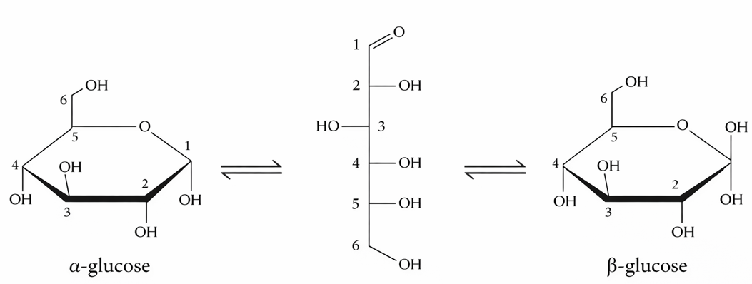 Glucose là loại đường monosaccharide phổ biến nhất và được sử dụng để tráng gương trong công nghiệp. Trong dung dịch, glucose tồn tại chủ yếu ở hai dạng mạch vòng và chuyển hóa lẫn nhau thông qua dạng mạch hở như hình sau: