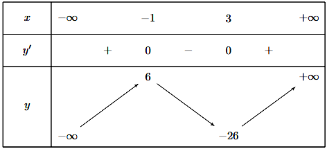 Cho hàm số $y = f(x)$ có bảng biến thiên như sau.