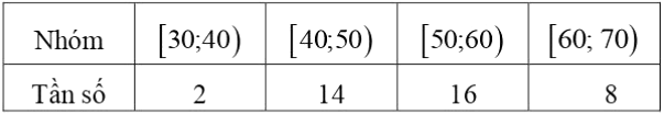 Bảng sau đây biểu diễn mẫu số liệu ghép nhóm về cân nặng (đơn vị: kilôgam) của 40 học