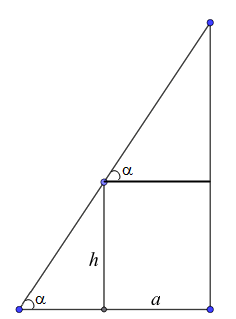 Gọi $\alpha$ là góc tạo bởi chiếc thang và mặt đất. Biểu diễn tổng chiều dài chiếc thang L theo góc $\alpha$ và các thông số đã cho.