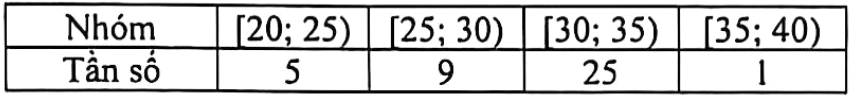 Bảng dưới đây biểu diễn mẫu số liệu ghép nhóm về chiều cao (đơn vị: cm) của 40 cây cà chua trong vườn ươm: