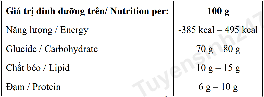 | b) Trong 100 gam X, carbohydrate cung cấp năng lượng tối đa là 320 kcal. | ||