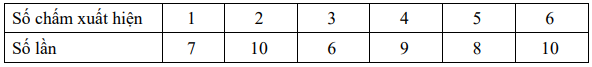 Bạn Hoan gieo một con xúc xắc 50 lần và ghi lại số chấm xuất hiện ở mỗi lần gieo, được kết quả như sau: