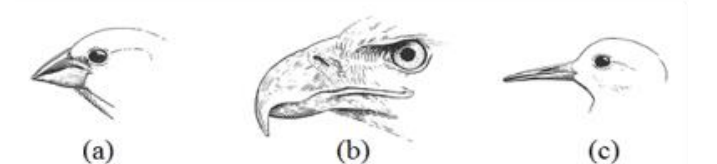 Quan sát dạng mỏ của một số loài chim (kí hiệu (a), (b), (c)) ở hình bên và căn cứ nội dung