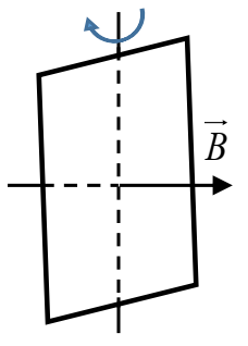 Một khung dây dẫn phẳng hình chữ nhật có kích thước 10 cm x 20 cm, gồm 300 vòng dây đặt trong từ trường đều. Biết vectơ cảm ứng từ $\overset{\rightarrow}{B}$ có phương nằm ngang và có độ lớn 0,4 T. Khung dây có thể quay quanh một trục thẳng đứng nằm trong mặt phẳng của khung như hình vẽ. Ban đầu mặt phẳng khung vuông góc với các đường sức từ. Cho khung quay đều với tốc độ góc $2\pi rad/s$. Độ lớn suất điện động cảm ứng trung bình xuất hiện trong khung dây khi nó quay được một góc $\dfrac{\pi}{3}$ kể từ vị trí ban đầu là