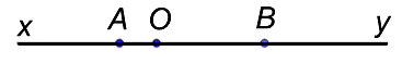 Cho hình vẽ sau: Một đường thẳng chứa các điểm A, O, B theo thứ tự từ trái sang phải, hai