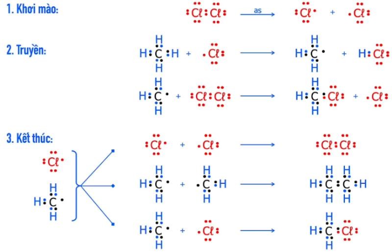 Phản ứng của methane với chlorine tạo thành methyl chloride theo phương trình hóa