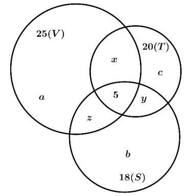 Lớp 10C có 45 học sinh trong đó có 25 em thích môn Văn, 20 em thích môn Toán, 18 em thích môn Sử, 6 em không thích môn nào, 5 em thích cả ba môn. Có bao nhiêu học sinh thích chỉ một trong ba môn học trên?