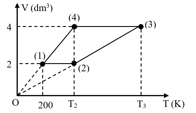 | b) Áp suất của khối khí khi ở trạng thái $(1)$ là $p_{1} = 831\text{kPa}$. | ||