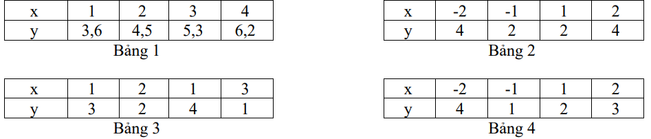 Cho các bảng sau, bảng nào y không phải là hàm số của x?