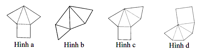 Trong các hình khai triển sau, hình nào gấp được một hình chóp tứ giác đều?