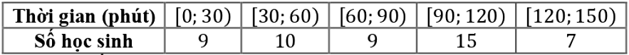 Khảo sát thời gian tự học bài ở nhà của học sinh khối 9 ở trường X, ta thu được bảng