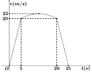 Một người chuyển động trên một quãng đường thẳng, mối quan hệ giữa vận tốc và thời gian được minh họa như hình vẽ. Đường cong trong hình vẽ là một phần của parabol.