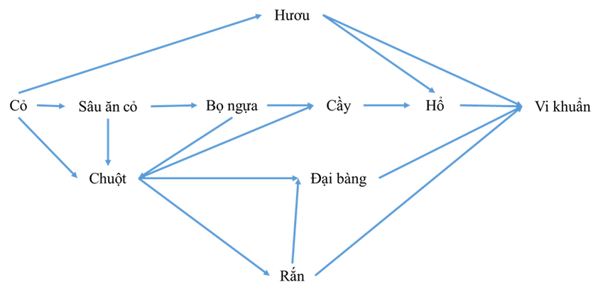 - Kết nối các chuỗi có chung mắt xích để tạo thành lưới thức ăn.