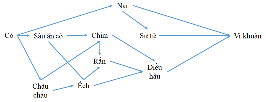 - Kết nối các chuỗi có chung mắt xích để tạo thành lưới thức ăn.