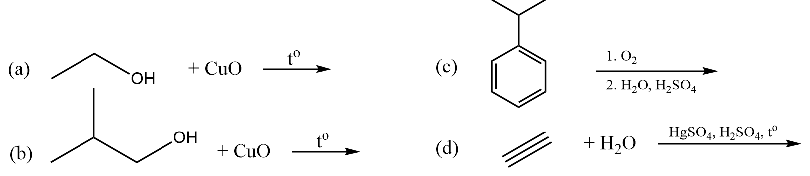 Cho các phản ứng sau:Những phản ứng có sản phẩm aldehyde