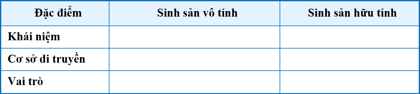 a) Phân biệt đặc điểm hình thức sinh sản vô tính và sinh sản hữu tính bằng cách hoàn thành bảng sau:
