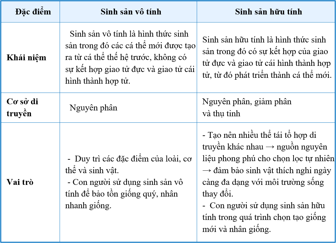 a) Phân biệt đặc điểm hình thức sinh sản vô tính và sinh sản hữu tính bằng cách hoàn thành
