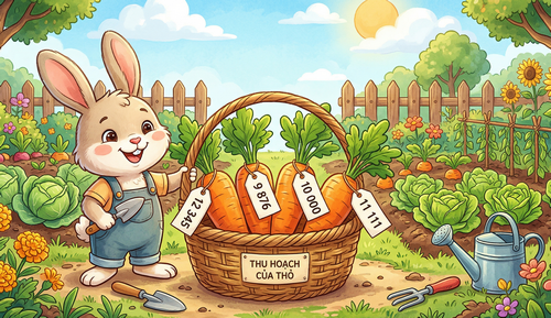 Bạn thỏ nhặt được 4 củ cà rốt có ghi các con số: 12 345, 9 876, 10 000, 11 111. Củ cà rốt ghi