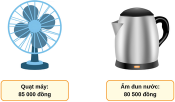 Mẹ đi siêu thị mua một chiếc quạt máy giá 85 000 đồng và một chiếc ấm đun nước giá 80 500