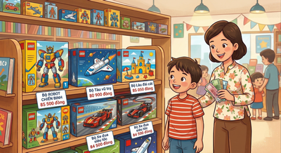 Nhân dịp sinh nhật, bạn Tuấn được mẹ dẫn đi nhà sách để mua một bộ đồ chơi lắp ráp. Mẹ cho Tuấn 85 000 đồng.