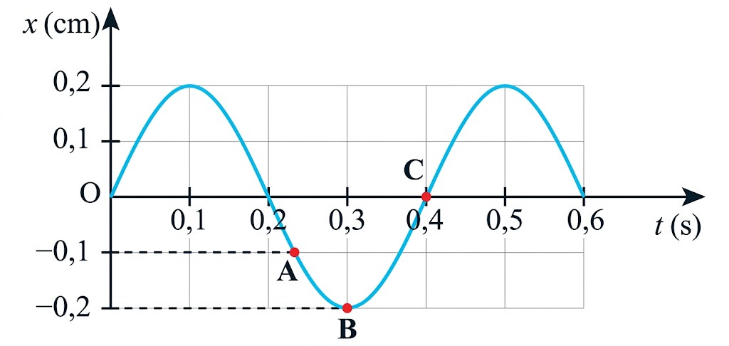 | c) Li độ của vật dao động tại B là 0,2 cm. | ||