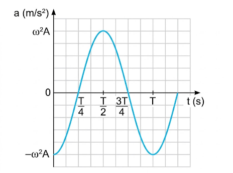 | d) Trong khoảng thời gian từ $T/4$ đến $T/2$ thì gia tốc có giá trị thay đổi từ 0 đến $\omega^{2}A$. |
