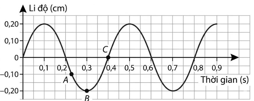 Xác định li độ $x$ tại các điểm A, B, C dựa vào lưới tọa độ trên đồ thị.