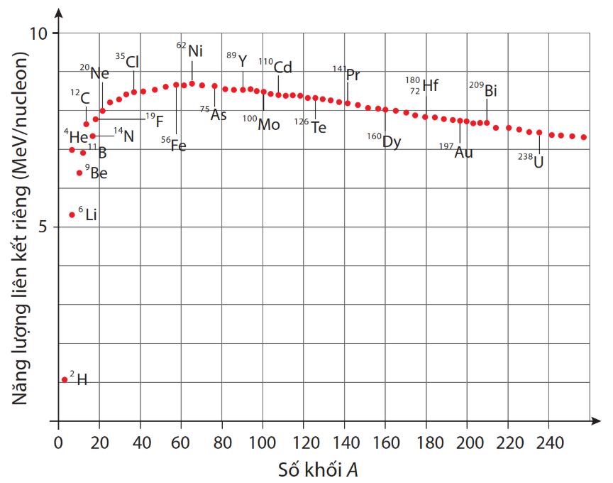 Dựa vào đồ thị biểu diễn mối liên hệ giữa năng lượng liên kết riêng của các hạt nhân