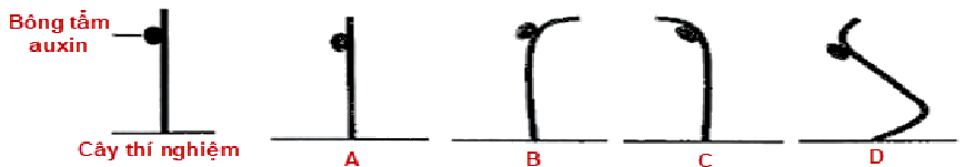 Một cây non bị cắt bỏ đỉnh sinh trưởng. Sau đó, người ta dùng bông tẩm auxin đặt áp sát