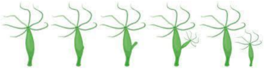 Quan sát hình vẽ, nhận biết cách sinh sản của động vật. Nếu cơ thể con phát triển từ một chồi nhỏ mọc ra từ cơ thể mẹ thì đó là nảy chồi.