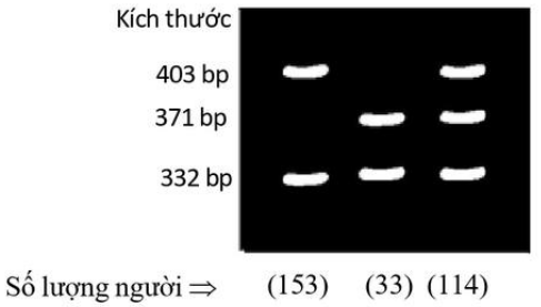 - Cột 3 (114 người): Có cả vạch 403 bp và 371 bp → Kiểu gene dị hợp Aa.