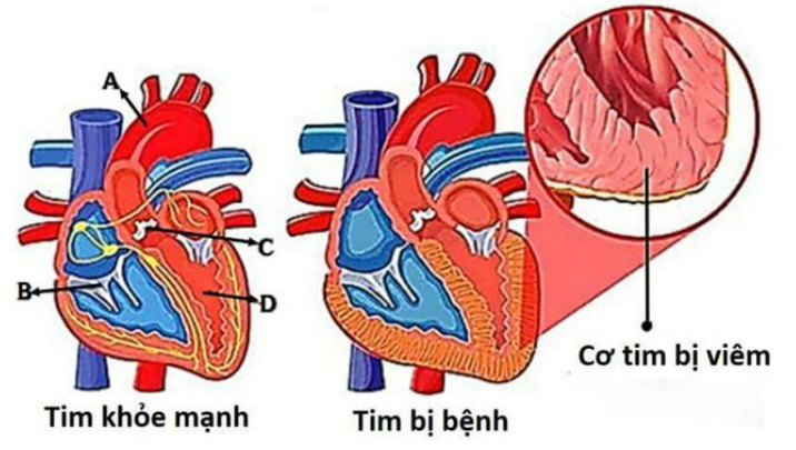 Bản chất bệnh lý: Viêm cơ tim làm tế bào cơ tim bị tổn thương, giảm khả năng co bóp và có thể gây rối loạn hệ thống dẫn truyền xung điện tim