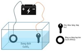 Một nhóm học sinh muốn sử dụng phương pháp điện phân để mạ đồng (copper) cho chiếc chìa