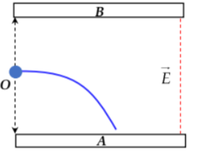 Dựa vào quỹ đạo lệch để xác định lực điện và từ đó suy ra dấu điện tích các bản. Hạt $q > 0$ bị hút về bản mang điện âm.
