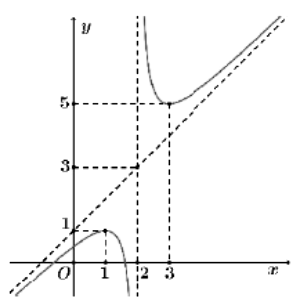 | c) Đường tiệm cận đứng của đồ thị là đường thẳng $x = 2$. | ||