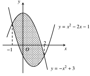 Diện tích phần hình phẳng gạch chéo trong hình vẽ bên được tính theo công thức nào dưới