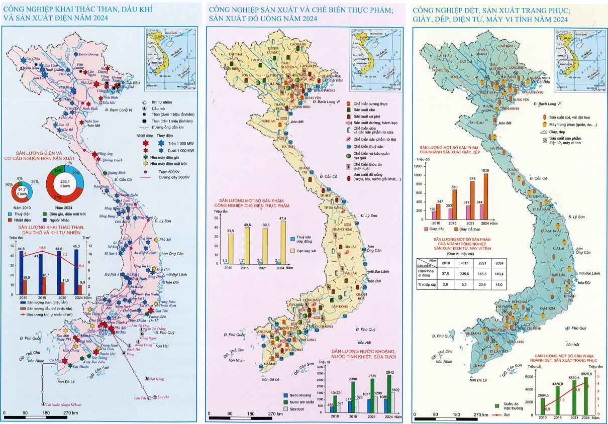 - Dựa vào bản đồ (công nghiệp khai thác than, dầu khí và sản xuất điện năm 2024).
