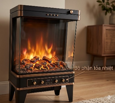 Tính thời gian hoạt động của lò sưởi: $t = \dfrac{Q_{\text{tp}}}{P}$.