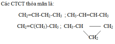 Cho hợp chất X có công thức phân tử là C4H8. Số đồng phân cấu tạo làm mất màu dung dịch Brom ứng với X là