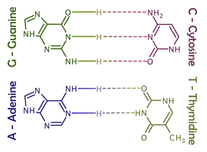 Trong cấu trúc của DNA, các nucleotide giữa hai mạch đơn liên kết với nhau bằng liên kết