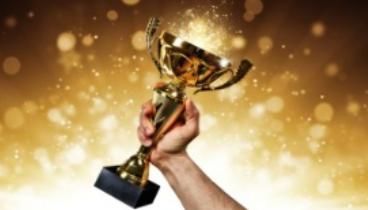 Quan sát hình ảnh: Một chiếc cúp vàng được trao cho người chiến thắng.