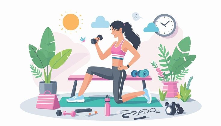 Dấu hiệu hình ảnh: Một người phụ nữ đang tập tạ trong phòng tập (gym) với đồng hồ và dụng cụ thể thao