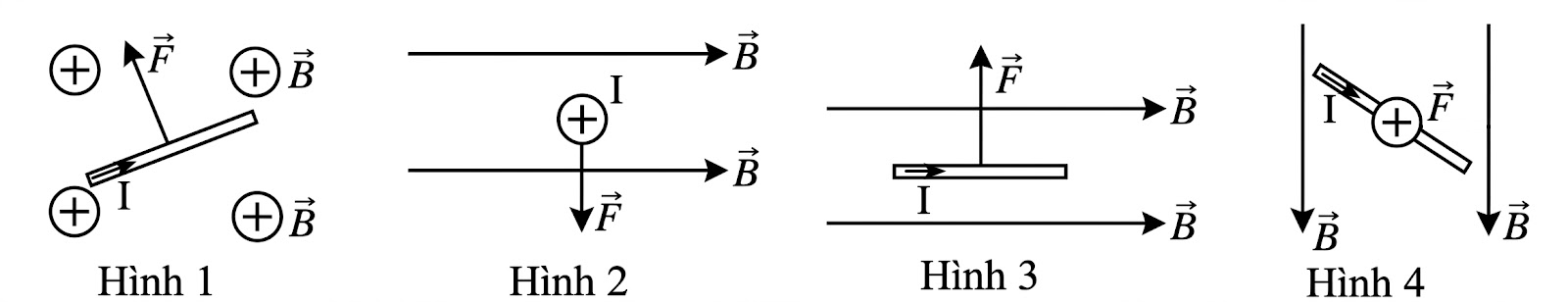 Hình nào sau đây biểu diễn không đúng vector lực từ tác dụng lên đoạn dây dẫn mang dòng điện đặt trong từ trường?
