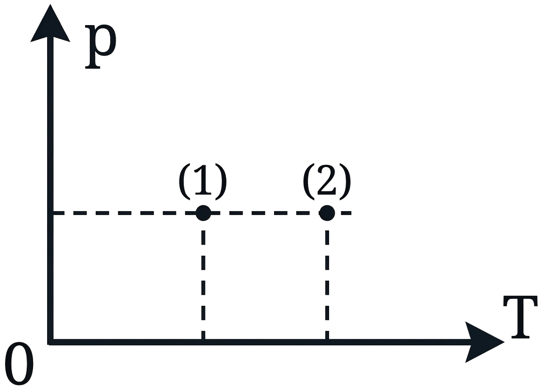 Trên đồ thị $p - T$ biểu diễn hai trạng thái (1) và (2) của cùng một khối lượng khí xác