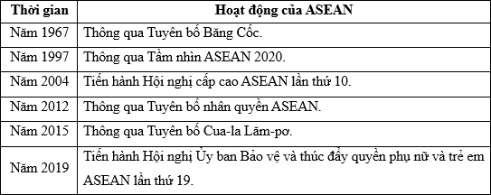 | a) Từ năm 2004 đến năm 2019, ASEAN đã xây dựng được hệ thống văn bản pháp lý bảo đảm thực thi nghiệm ngặt các chuẩn mực về dân chủ và nhân quyền trong toàn khu vực. | ||