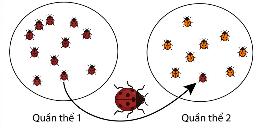 Dòng gene: Là sự trao đổi gene giữa các quần thể thông qua sự di cư của các cá thể hoặc sự phát tán của các giao tử (hạt phấn).