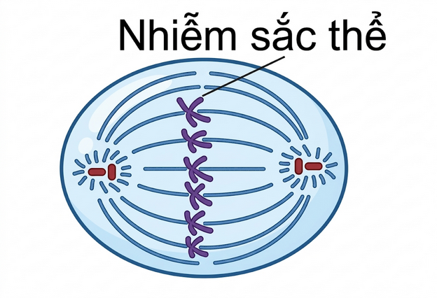 - Kì giữa: Các NST kép co xoắn cực đại và tập trung thành một hàng trên mặt phẳng xích đạo của thoi phân bào.
